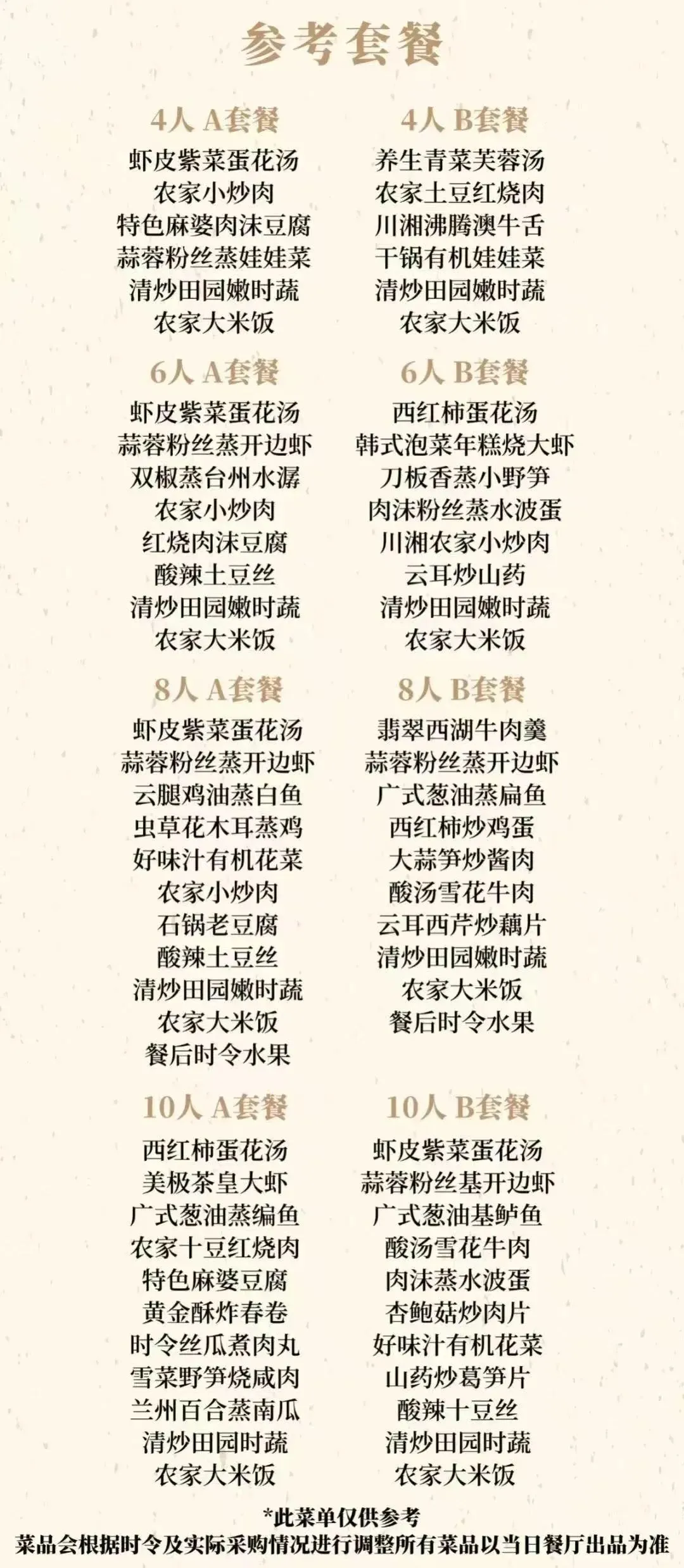 *酒店默认第一天吃午餐,菜单根据人数调整;30人以上自助早餐(其他定量份餐)。