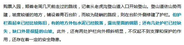 在记者探访当天,除了在景区售票处闸口看到两名保安外,在老虎沟至客家老围路段,记者未看到其他工作人员。这也侧面印证了老周“没有工作人员指引”的说法。
