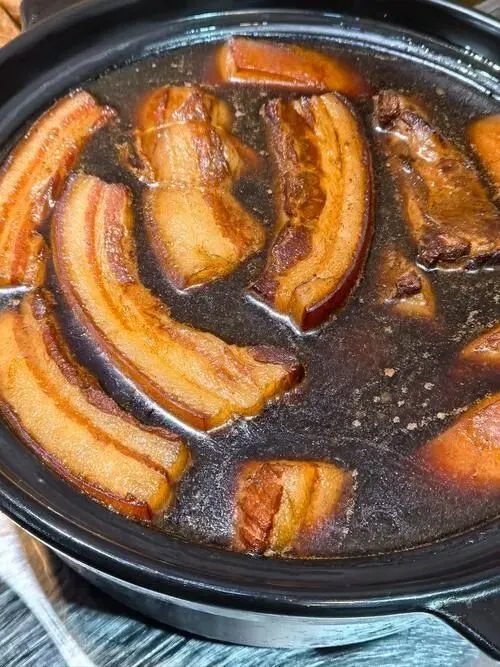 第一样,甏肉干饭。念”bèng”,别念错让人笑话。肥肉炖得颤巍巍,筷子一戳就散架,肥的部分入口即化,瘦的部分还带着嚼劲。米饭拌上肉汤,连干3碗不费劲。小店里一份15块钱,肉给得扎实,吃完嘴角流油,抹抹嘴心里妥帖。本地人中午懒得做饭就整这个,顶到晚上不带饿的。