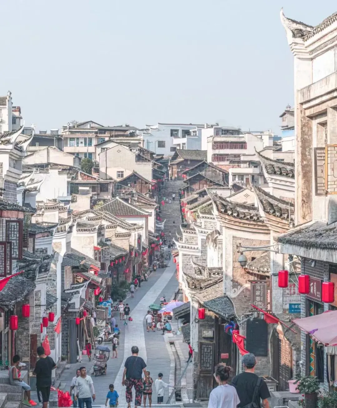 翘街位于黎平县城东面,因地形中间平坦、两头翘起而得名。黎平在唐宋始有建置,明洪武十八年(1385)建五开卫,永乐十一年(1413)设黎平府。明清时期,翘街商贾云集,贸易繁盛,至今四合院、封火墙等古建筑遗存完好,飞檐翘角,鳞次栉比,古色古香,错落有致。