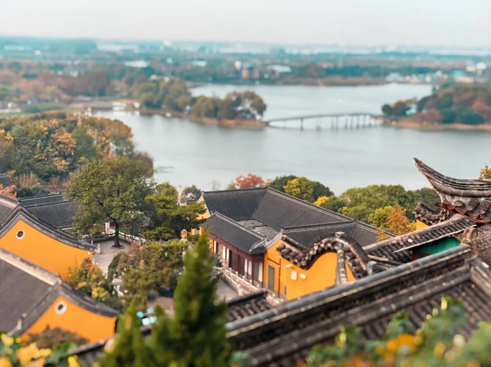 王安石在《金山》诗中生动描绘了登塔感受,“数重楼枕层层石,四壁窗开面面风。忽见鸟飞平在上,始惊身在半空中。”