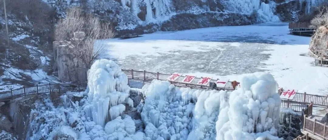 岁寒时节,闻京西房山霞云岭藏一奇景,名曰金水湖冰瀑,心向往之。遂驱车出郭,沿山道迂回,但见峰峦叠嶂,冬木萧疏,别有一番清寂之美。抵达处,湖山静穆,一座朱漆牌楼悄然立于谷口,红灯轻悬,为这银白世界平添几许人间暖意。
