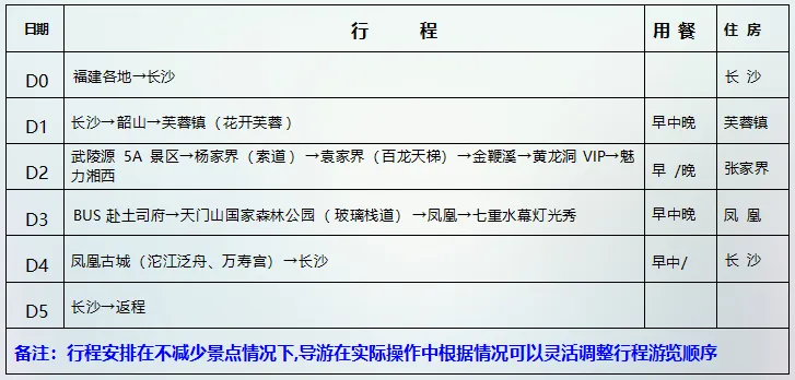 自由活动,根据您返程的航班或车次时间安排送站,返温馨家园。结束愉快的湖南之旅!