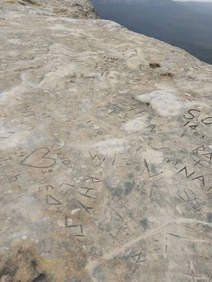 人们在柔软的砂岩上刻名字,频繁踩踏也破坏了周围植被,留下了永久性伤痕。
