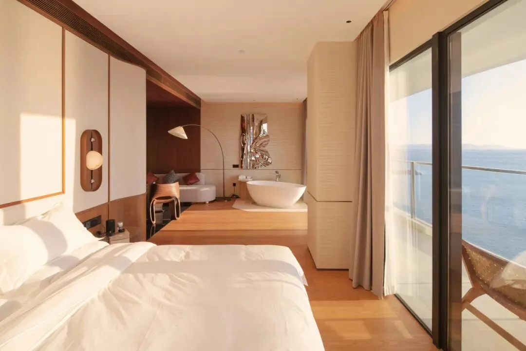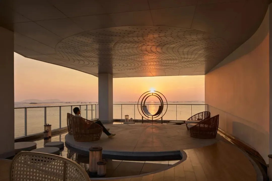 项目设有全海景房酒店、会议室、浮岛落日咖啡厅、酒店配有高级海景大床房、高级海景双床房、商务海景大床房、行政海景大床房、尊享海景大床房、尊享海景双床房等共31间房。特色潜水馆作为漳州首家室内潜水馆,以深海探索为主题,设6米和12米双平台,满足专业训练与休闲体验需求。