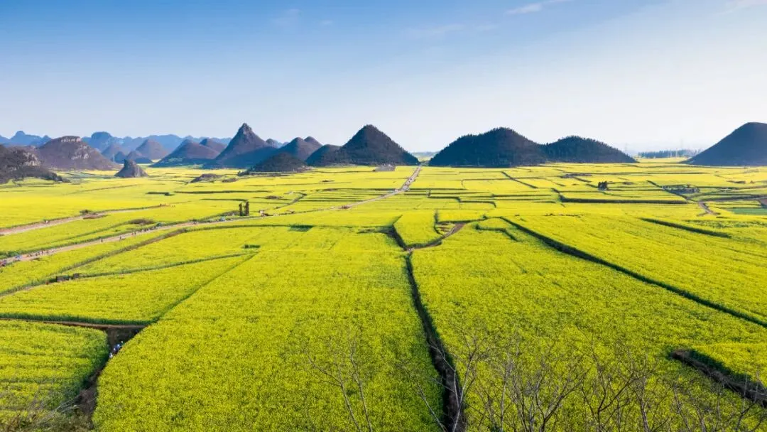 罗平油菜花景区,因世界第一大油菜花田而闻名,波澜壮阔的油菜花海,非常壮观震撼,这里也是中国春天最早到达的地方,每年二三月份,万亩油菜花竞相绽放,远远望去一片金黄璀璨,绝美而浪漫。