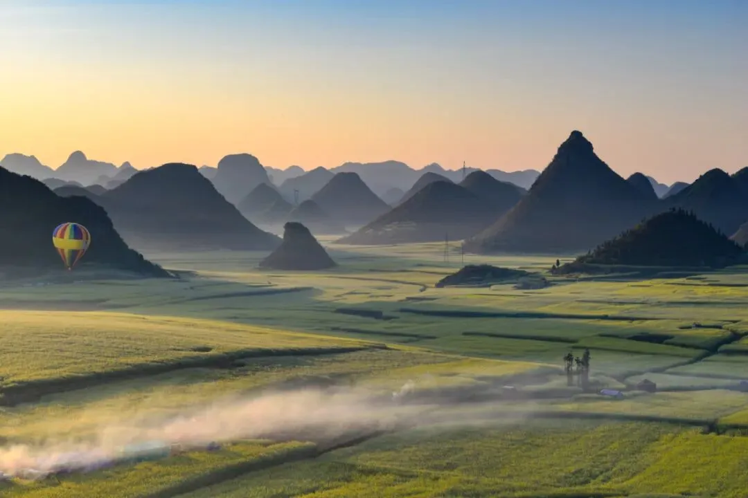 金鸡峰丛,峰林峰从连城片,每年花期的时候,漫山遍野的油菜花,如画的田园风光,勾勒出一幅幅天然画卷。登上观景台,可以看到一望无际的金色海洋,绵延起伏的山丘点缀在油菜花海中,映入眼帘的金黄色花海,美得令人窒息。