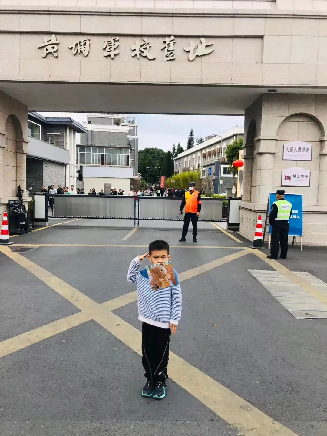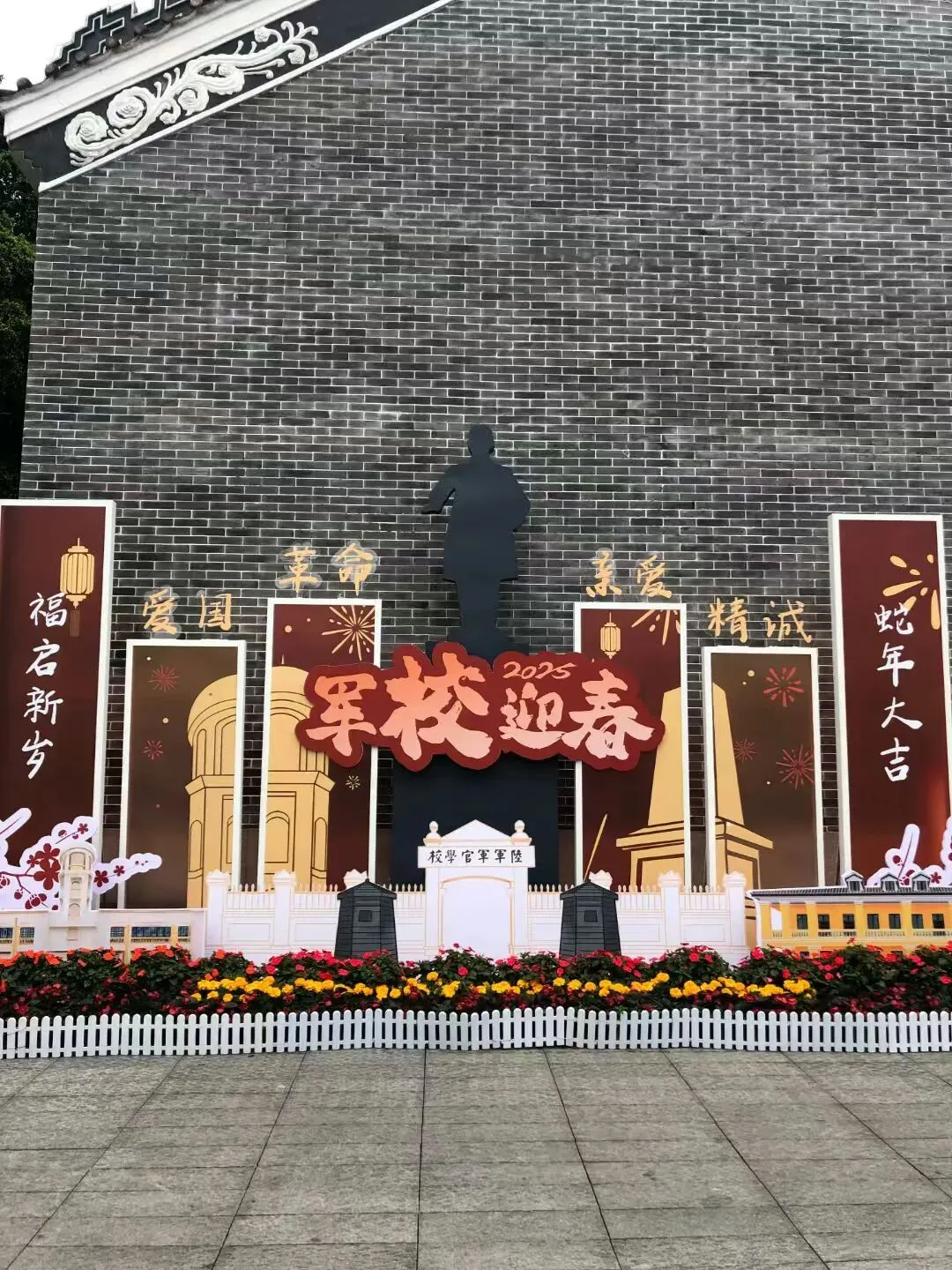 继续前往黄埔军校旧址,沿着马路直走,指示牌清晰,因是广州最著名景点,春节期间聚集了全国各地慕名而来的人。人挤人,街道里传来恭喜发财的歌声,路上有各种各样迎接新年的立牌,喧闹又繁杂。