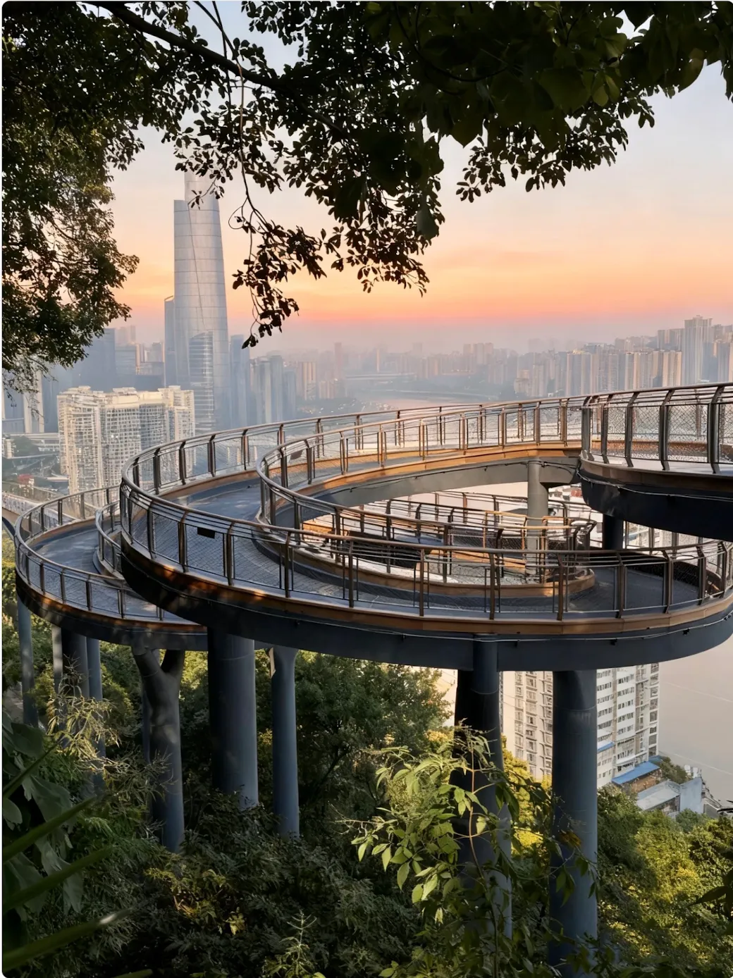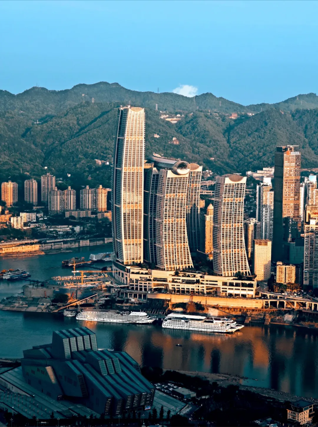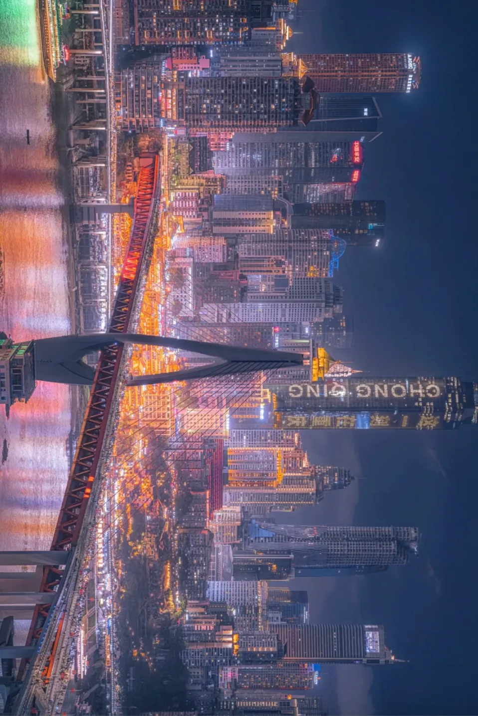 A gigantic complex "setting sail" from Chaotianmen, with a crystal skywalk offering panoramic views of the confluence of the two rivers.
