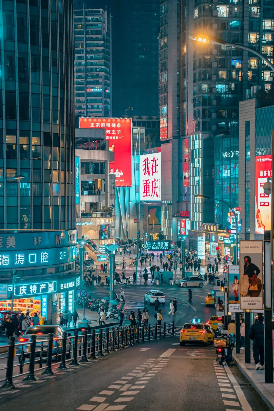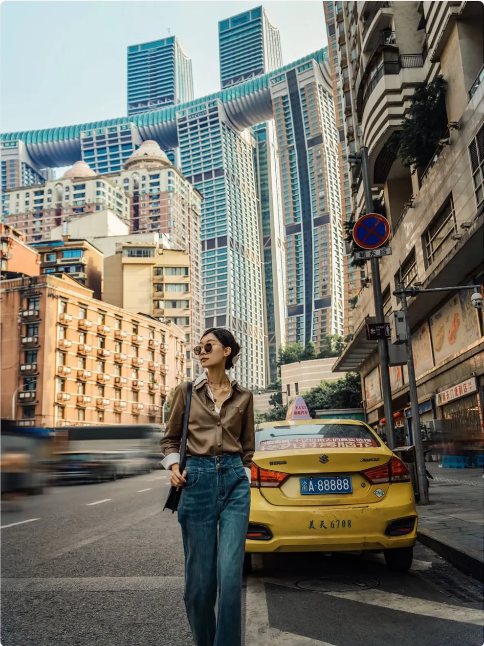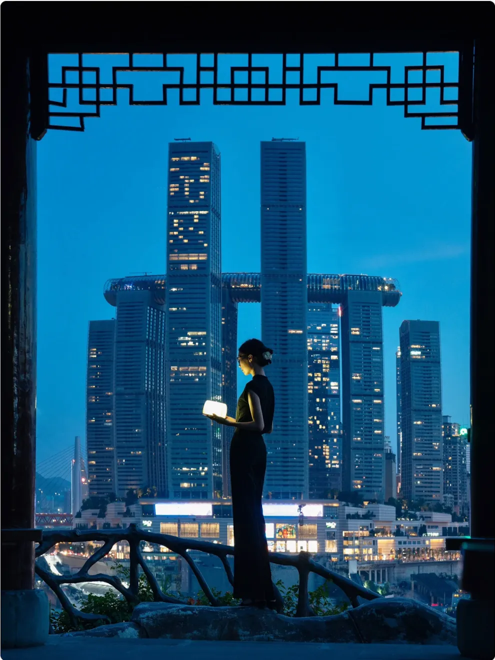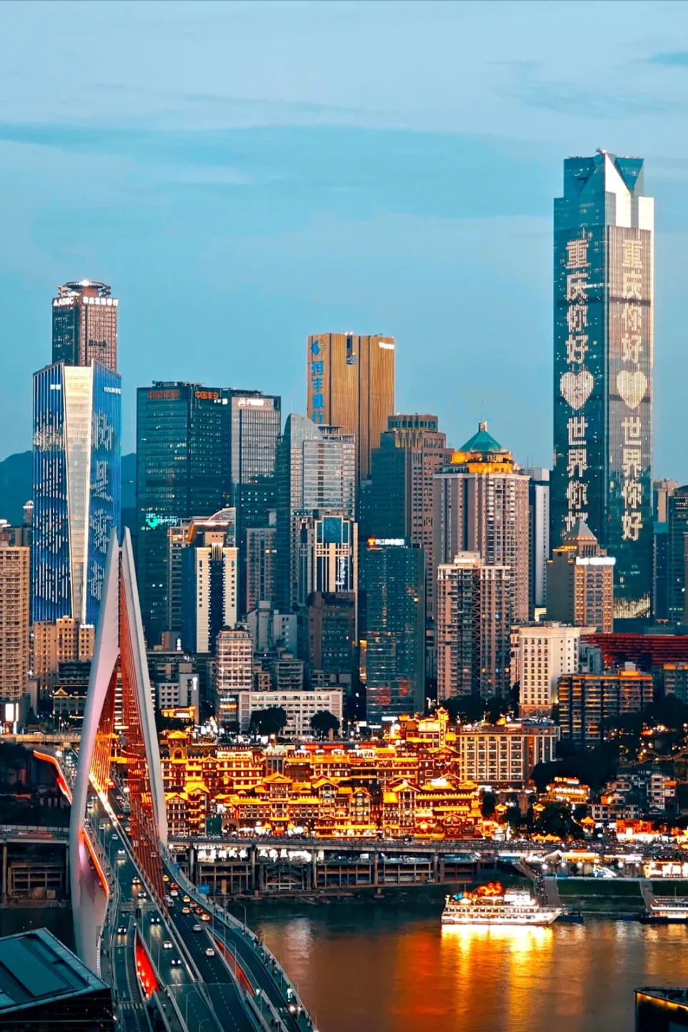 A gigantic complex "setting sail" from Chaotianmen, with a crystal skywalk offering panoramic views of the confluence of the two rivers.