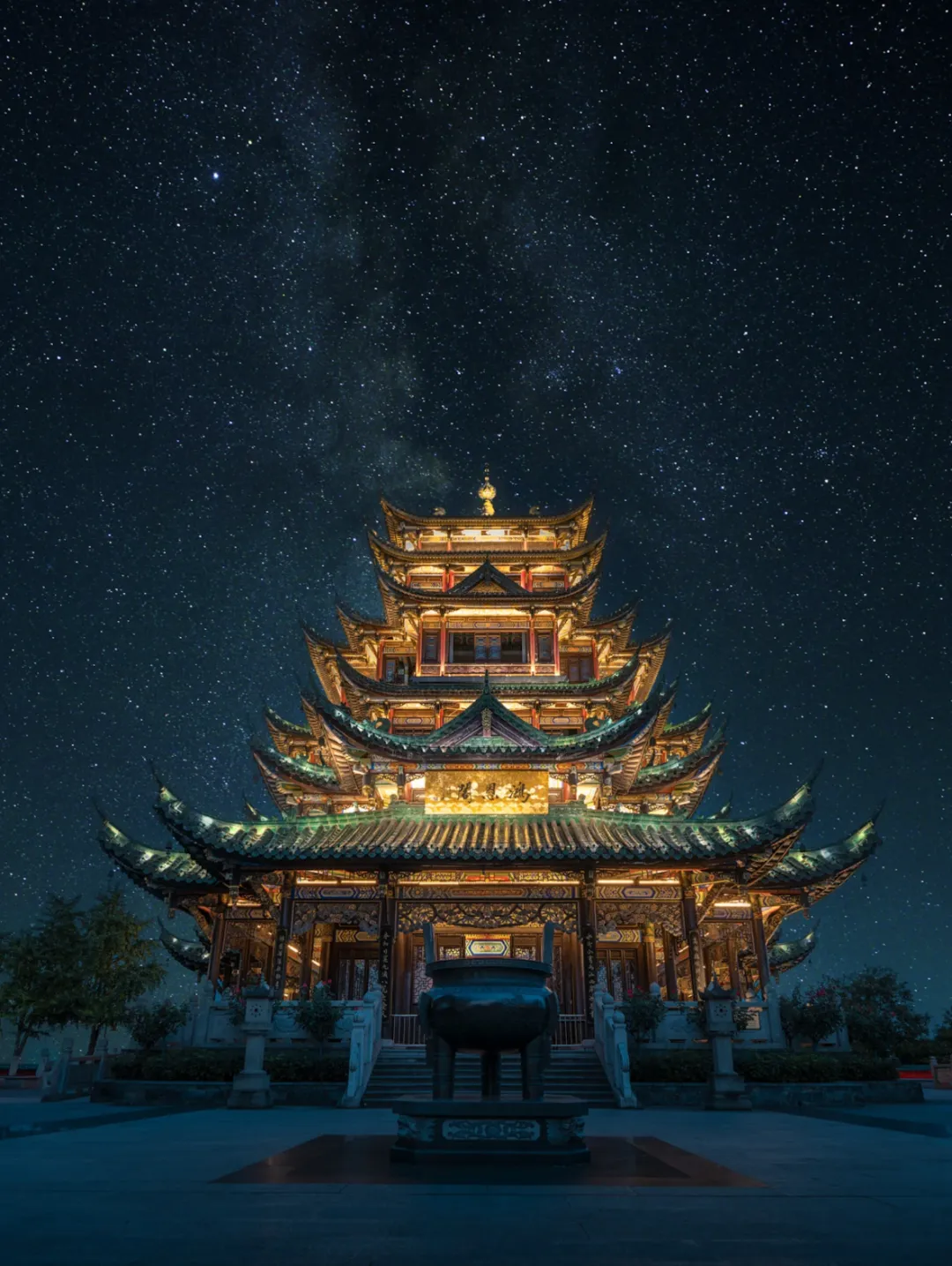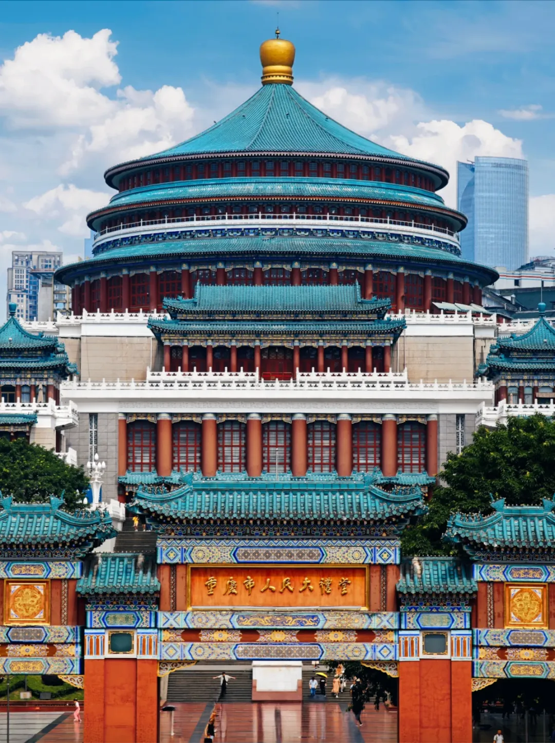 中国传统宫殿式建筑杰作,碧绿琉璃瓦与红色立柱气势恢宏。