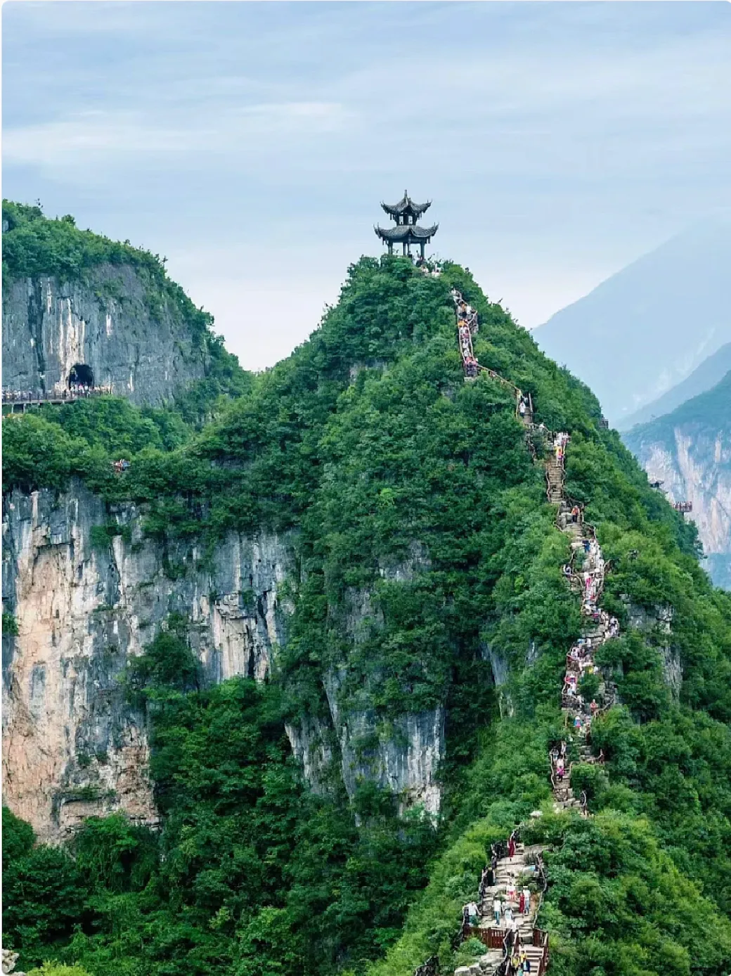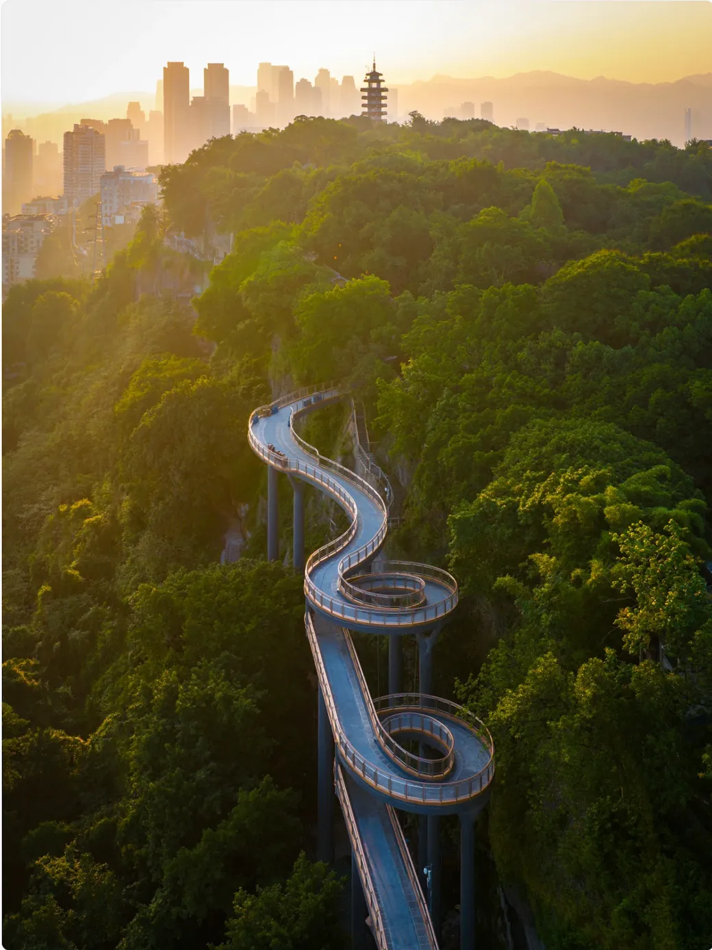 悬崖边的临江栈道,串联老城门与山城巷的市井脉络。