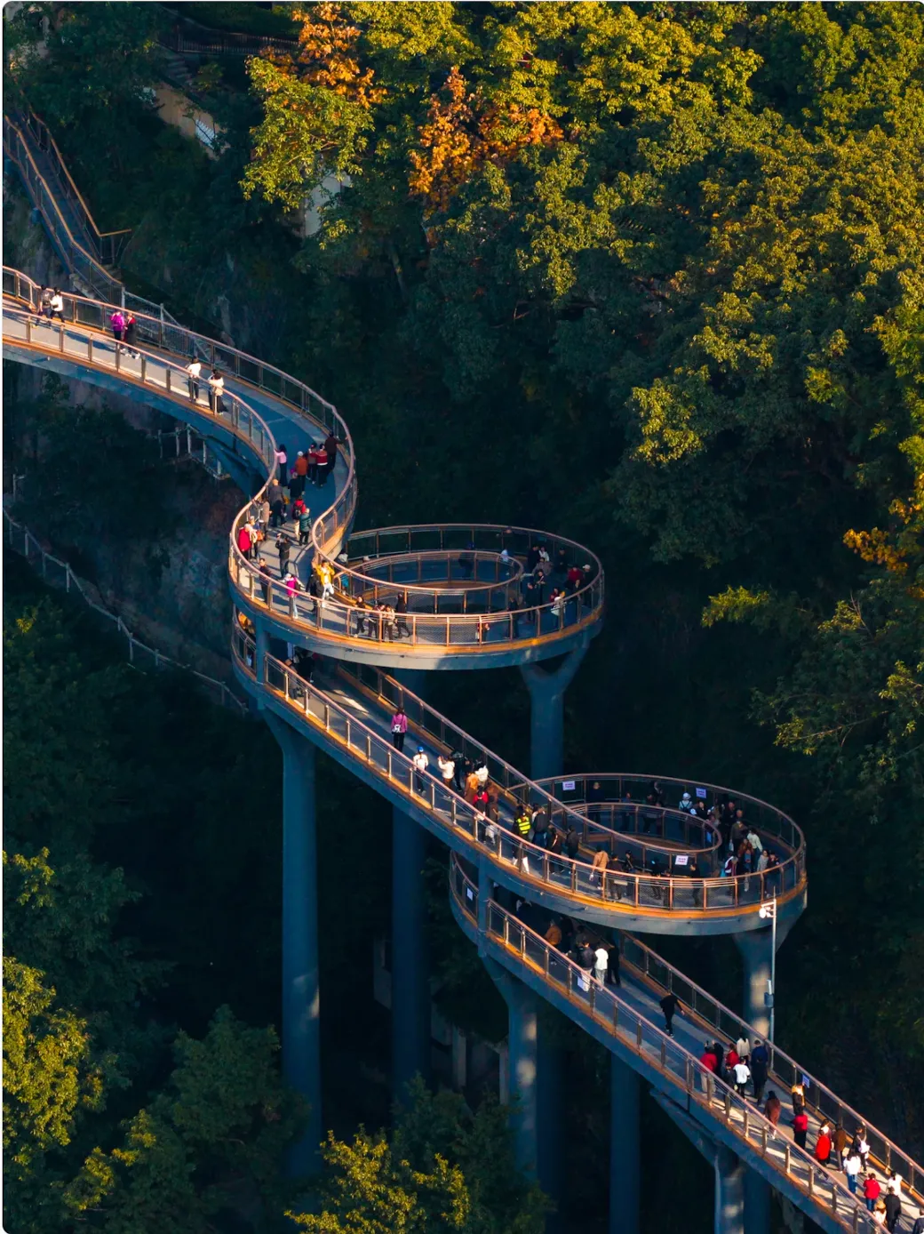 The world's first rainforest walkway spans across the Apong River, and the black stone-paved street bears witness to the century-old trading history of the Tujia people.