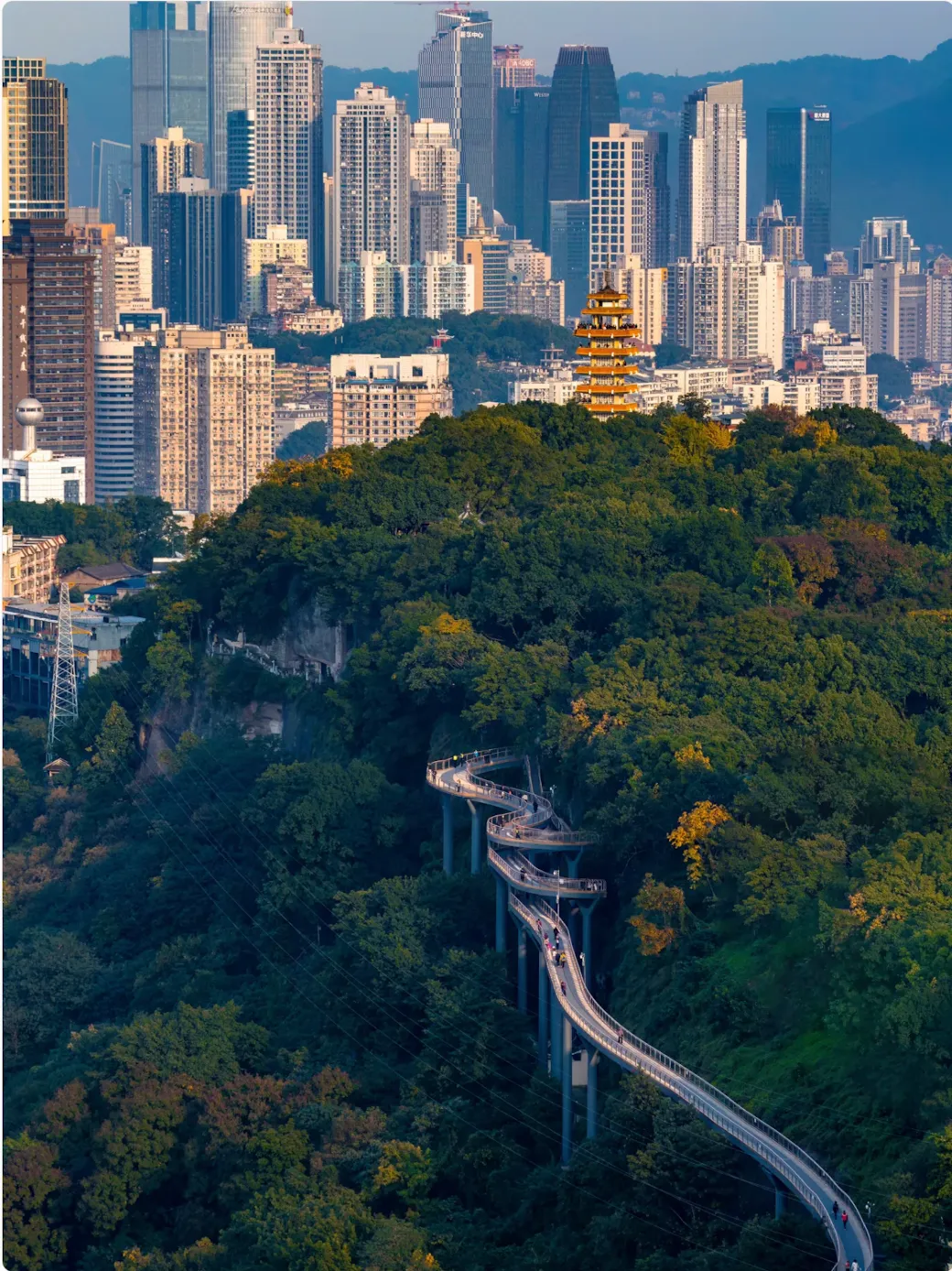 A forest park fragrant with osmanthus flowers; ascend its pavilion to overlook the sparkling nightscape of six main urban districts.