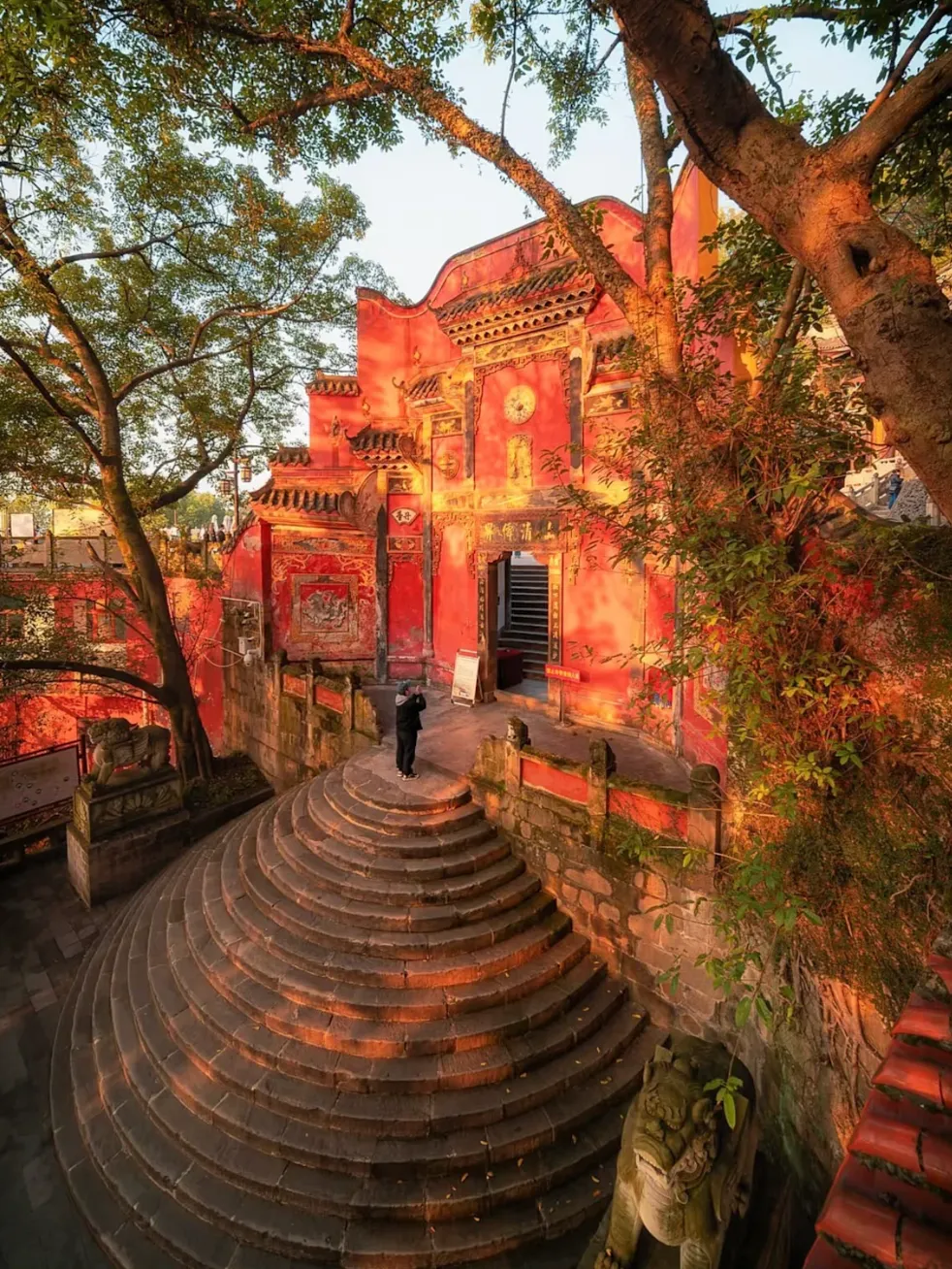 A millennium-old ancient temple hidden in the bustling downtown, forming a striking contrast with modern skyscrapers and its Song Dynasty stone carvings.