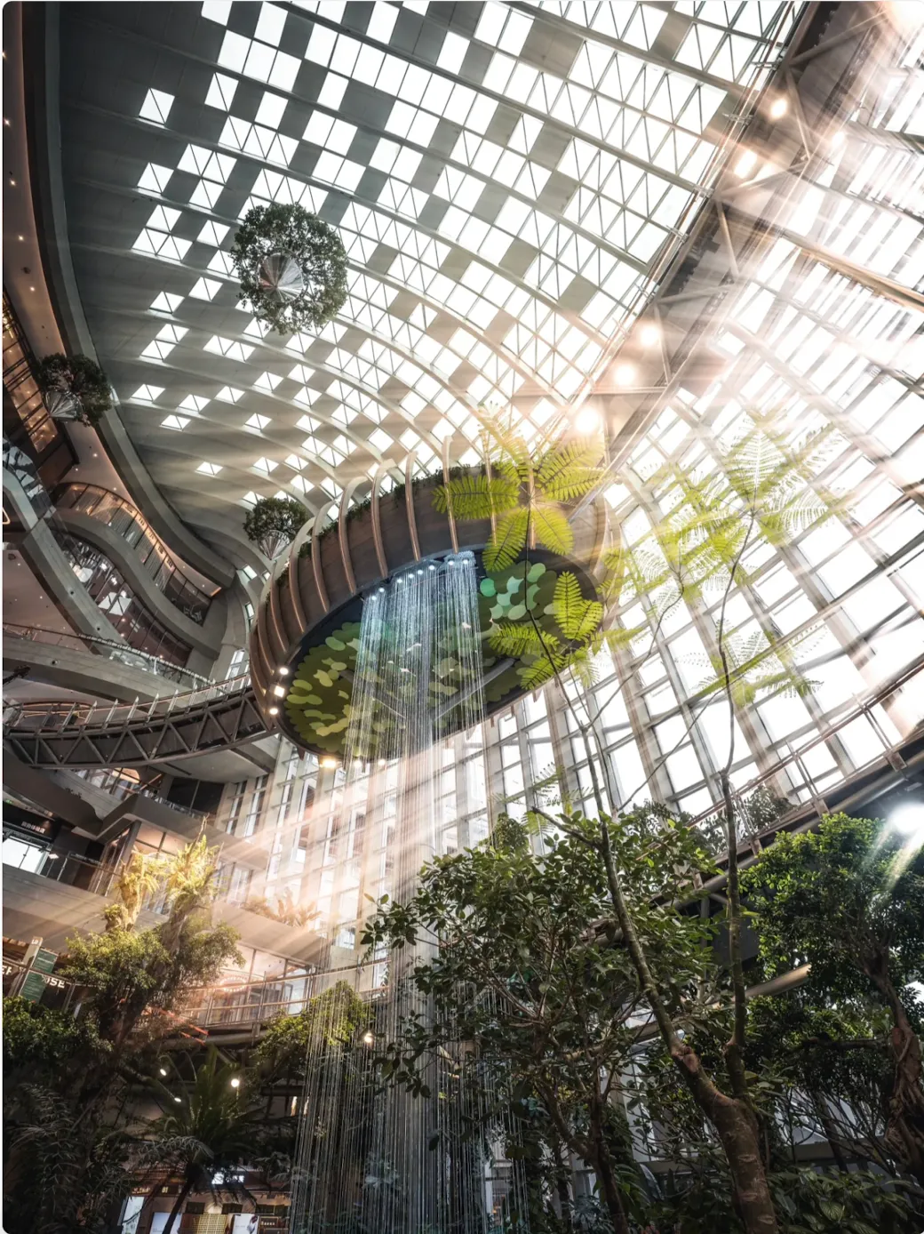 室内悬浮森林震撼登场,沐光阶梯演绎商业与自然共生。
