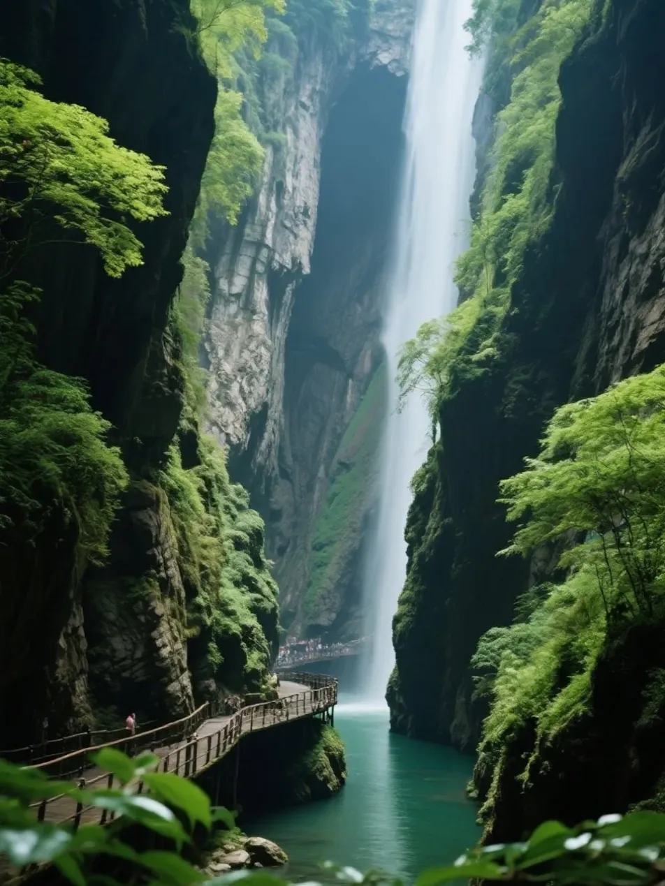 华夏第一高瀑望乡台,爱情天梯镌刻深山绝恋传奇。