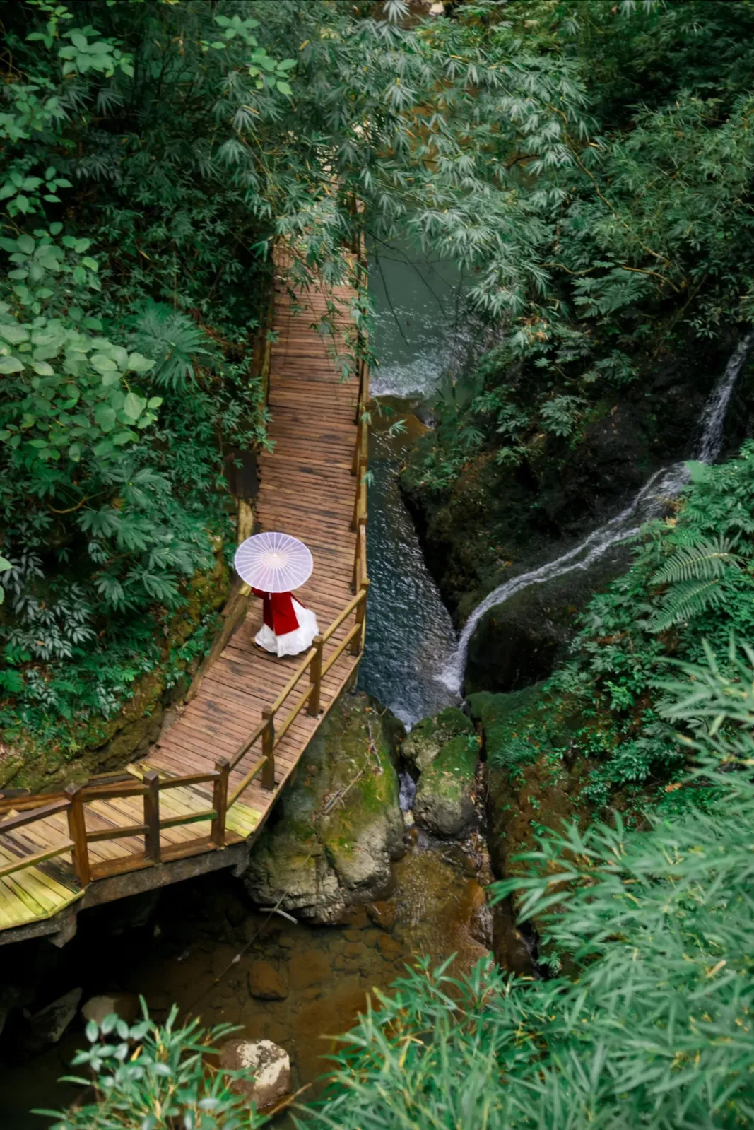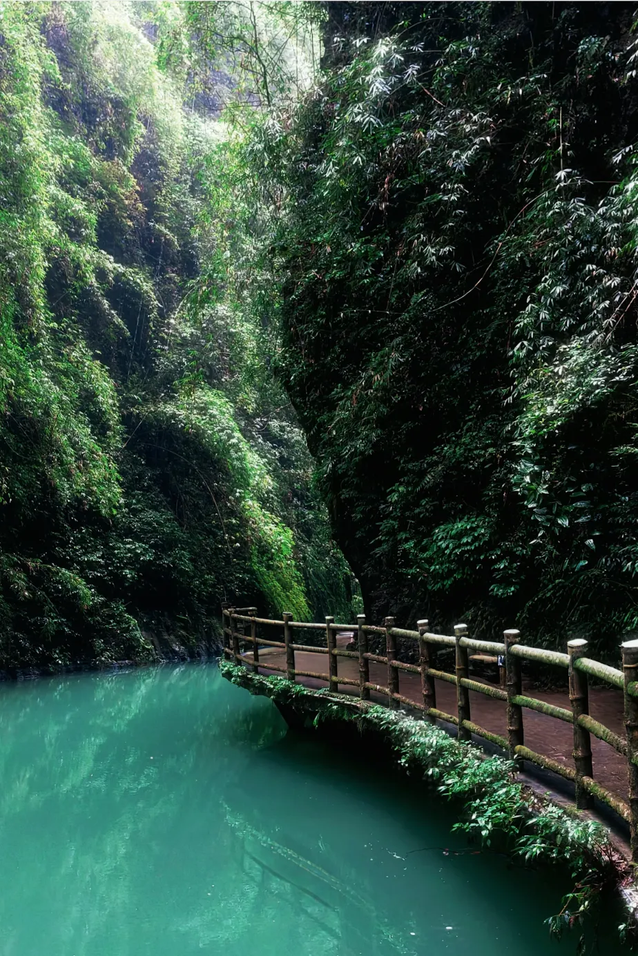 负氧离子爆表的原始峡谷,浮桥与瀑布开启洗肺之旅。