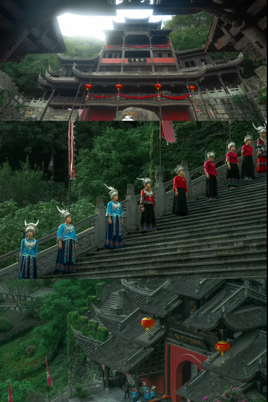 The largest Miao ethnic group's stilted building complex in the world, with the Jiuli Sacred Pillar and Chiyou Main Hall towering majestically, showcases the Miao ethnic group's ancestral culture. Every year, the grand festivals and the brilliant night scenes together build a spiritual home of Miao culture that spans thousands of years.