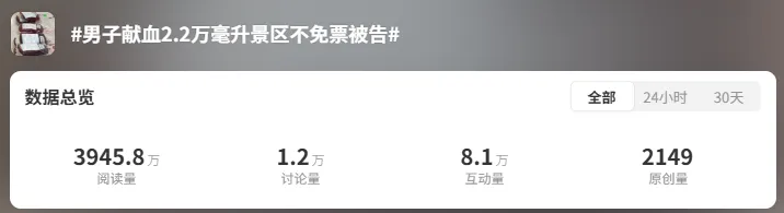 话题#男子献血2.2万毫升景区不免票被告#