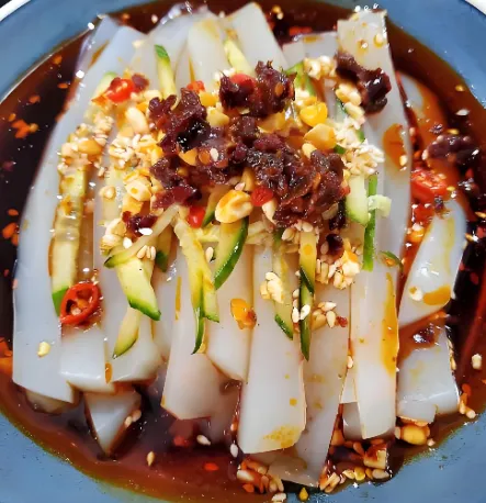 这可是南充的招牌,起源于蜀汉安汉县(今南充市)。粉质细腻,红油味香,麻辣鲜香。必须要吃那种现刮的黄凉粉,拌上豆豉、蒜泥、花椒面,最后撒一把酥脆的花生碎。推荐去“川北凉粉”总店或者路边排队的老摊儿,人均10块,辣得过瘾。