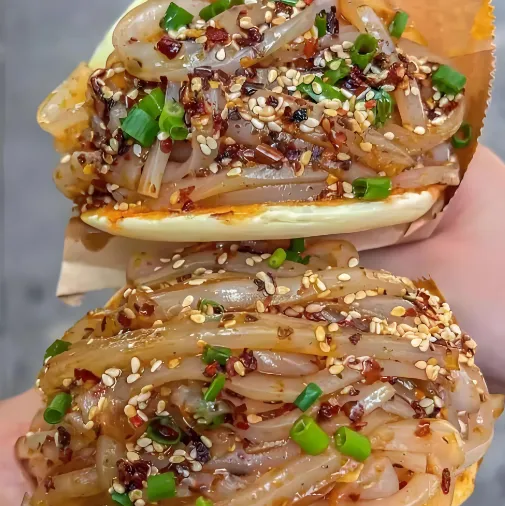 南充人的神仙搭配!锅盔烤得金黄酥脆,中间划开,灌进冰凉爽滑的凉粉,再塞满拌好的三丝(萝卜丝、粉丝、凉粉)。一口咬下去,外酥里嫩,冰火两重天。一定要去“方锅盔”或者“严锅盔”,记得趁热吃,凉了口感减半。