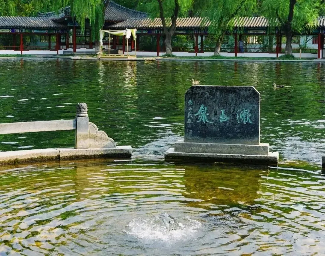 来到漱玉泉,泉池呈圆形,直径约3米,池底铺满鹅卵石,泉水喷涌,色如白玉。据说李清照曾在此掬水梳妆、填词吟诗,《漱玉词》即以此泉命名,感受古人的才情与生活情趣。