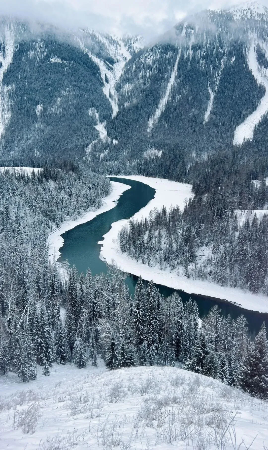 晨雾中的禾木村炊烟袅袅,神仙湾的水雾在阳光照射下泛着金光。