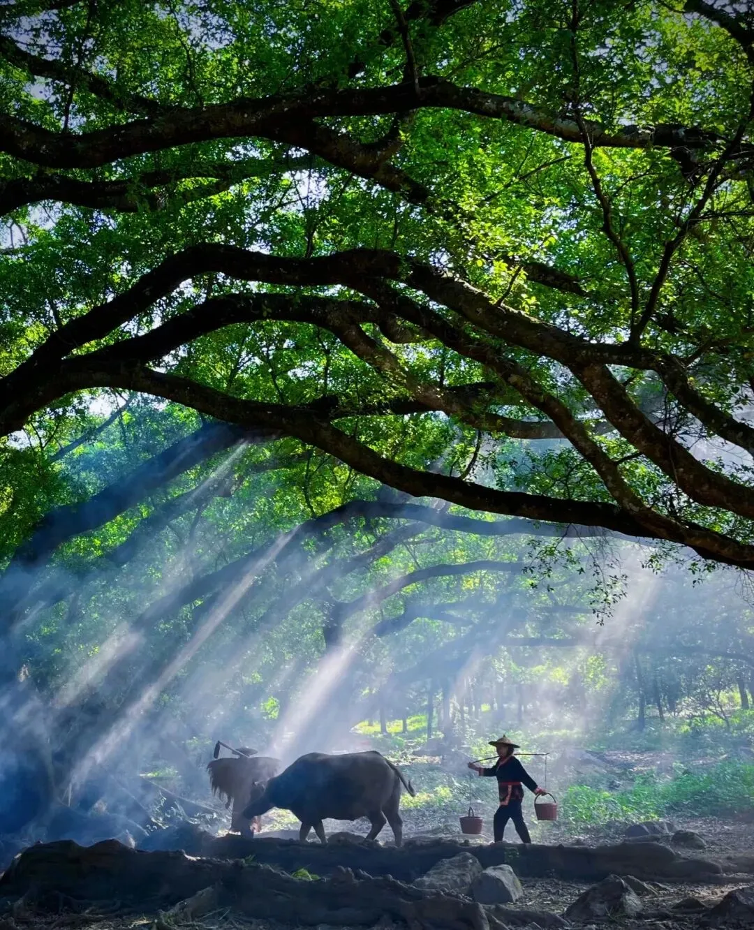东壁的日落染红整片海面,杨家溪的千年榕树群像极了绿野仙踪。