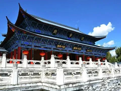 “北有故宫,南有木府”,作为丽江古城的文化核心,木府是历代纳西族木氏土司的府邸,也是《木府风云》等影视剧的取景地。这座仿紫禁城规制建造的建筑群,依山而建、气势恢宏,将中原宫殿的庄重与纳西族、白族的工艺精髓完美融合,三清殿、万卷楼、护法殿等殿宇错落有致,尽显土司家族的昔日荣光。