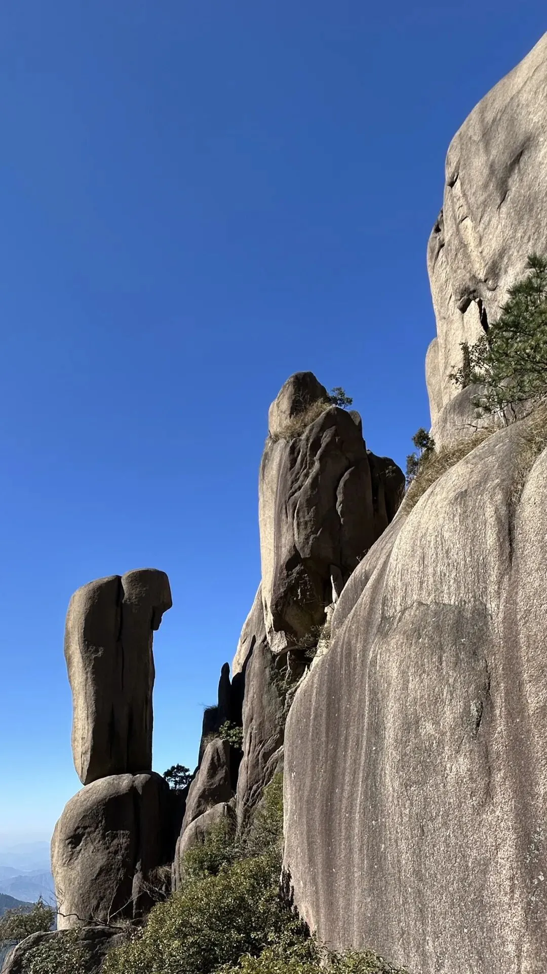 到了栈道末端,登临了一个平台后,有2个方向,到天台和大花台,三个小伙要去天台,而我肯定不去天台,因为1.有行李在花台寄存处2.膝盖情况不允许我长时间徒步.大家就此别过. 我在考量是否需要登顶? 来都来了,还是登顶看看吧.