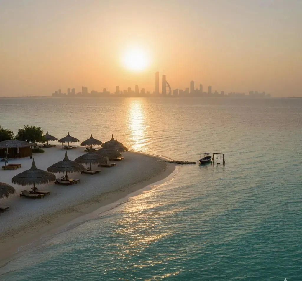 巴林本土的海滩多为人工修缮,而阿尔达群岛周边保留了波斯湾最原始的颜色。这里的水质清透,海草与鱼群清晰可见,是真正的“离岛避世地”。岛上错落有致地排布着巴林风格的草编小屋,租一个海边茅草屋,和朋友吃海鲜烧烤、浮潜或划皮划艇。从希特拉(Sitra)坐船需要10分钟。