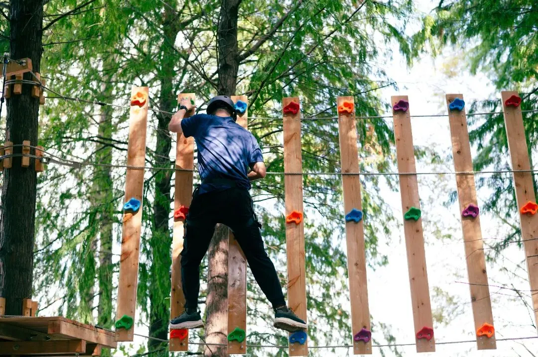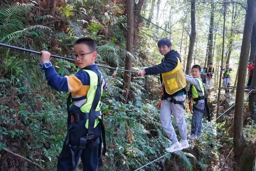 高空丛林穿越引入 “树冠上的勇气课堂” 自然教育课程体系。由攀岩专业持证教练与自然老师带队,将挑战转化为关于信任、风险评估与生态观察的成长课程。