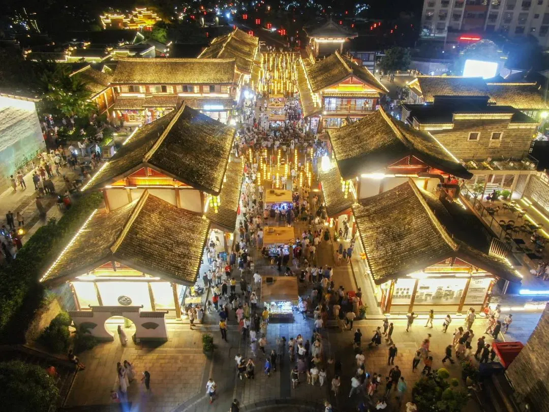 △9月30日,江西赣州,众多游客夜游江南宋城历史文化街区