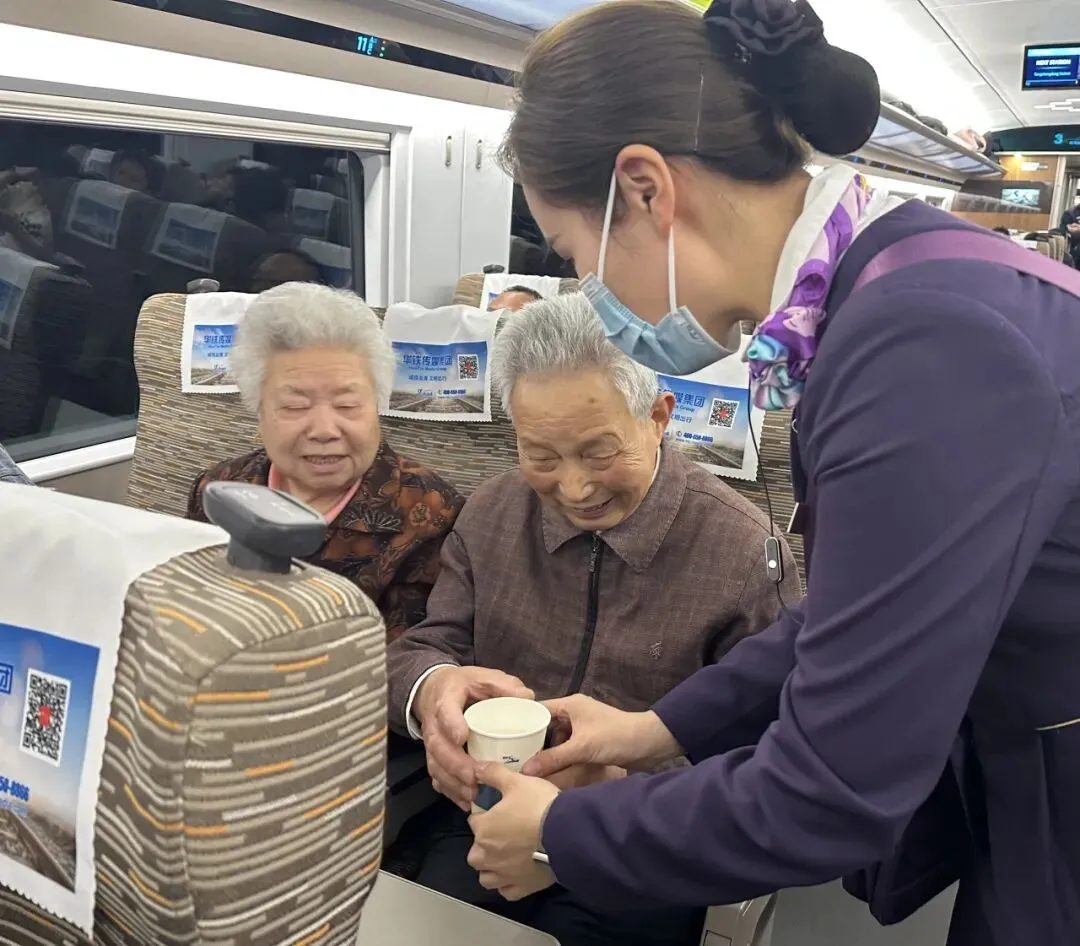 列车大厨针对老年旅游特点,精心烹制既体现当地特色又符合老年人口味的餐食;铁路部门在火车乘降、旅游大巴换乘地点增派人手,与车站提前对接联系、加强引导,全程做好服务。