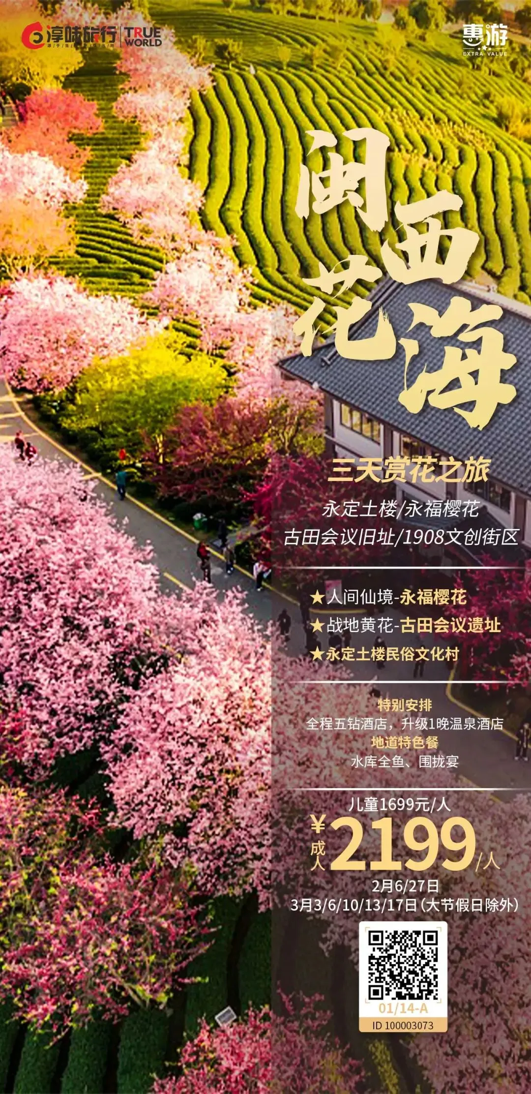 惠游【闽西花海】-漳州龙岩永福樱花3日高铁游