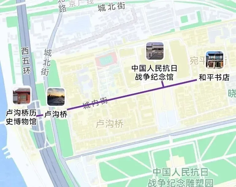 线路简介:丰台区选取和平书店、卢沟桥、卢沟桥历史博物馆、中国人民抗日战争纪念馆等地点,打造“薪火相传 红色法治”研学线路,让青少年在接受爱国主义教育的同时,增进法治观念,感受传统文化魅力。