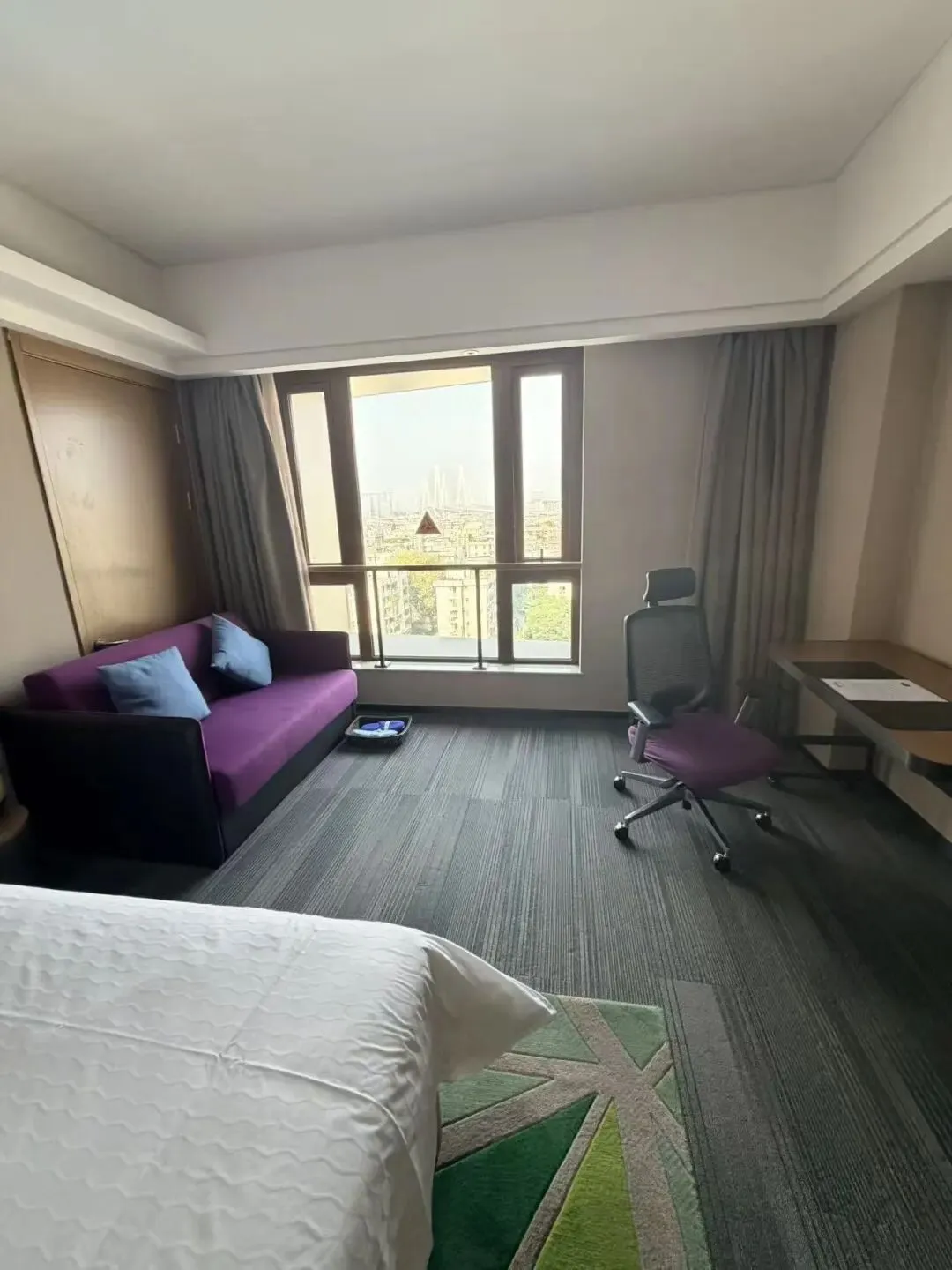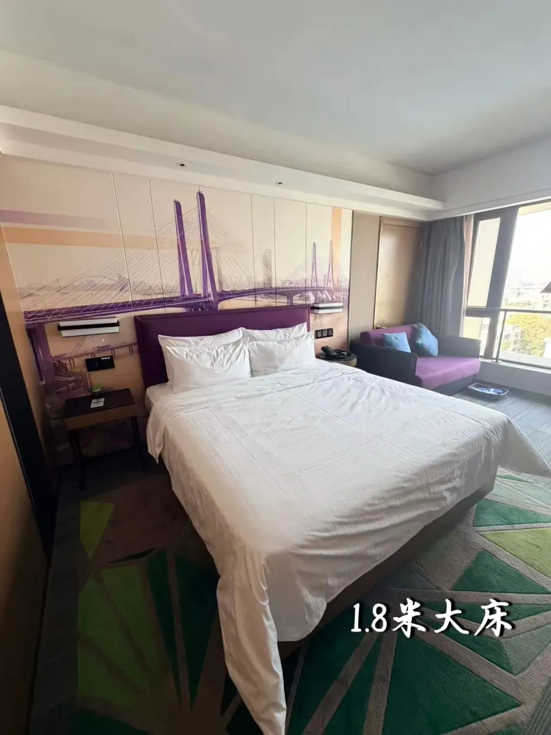 房间配备了1.8米大床和沙发,空间宽敞有轮椅回转空间。