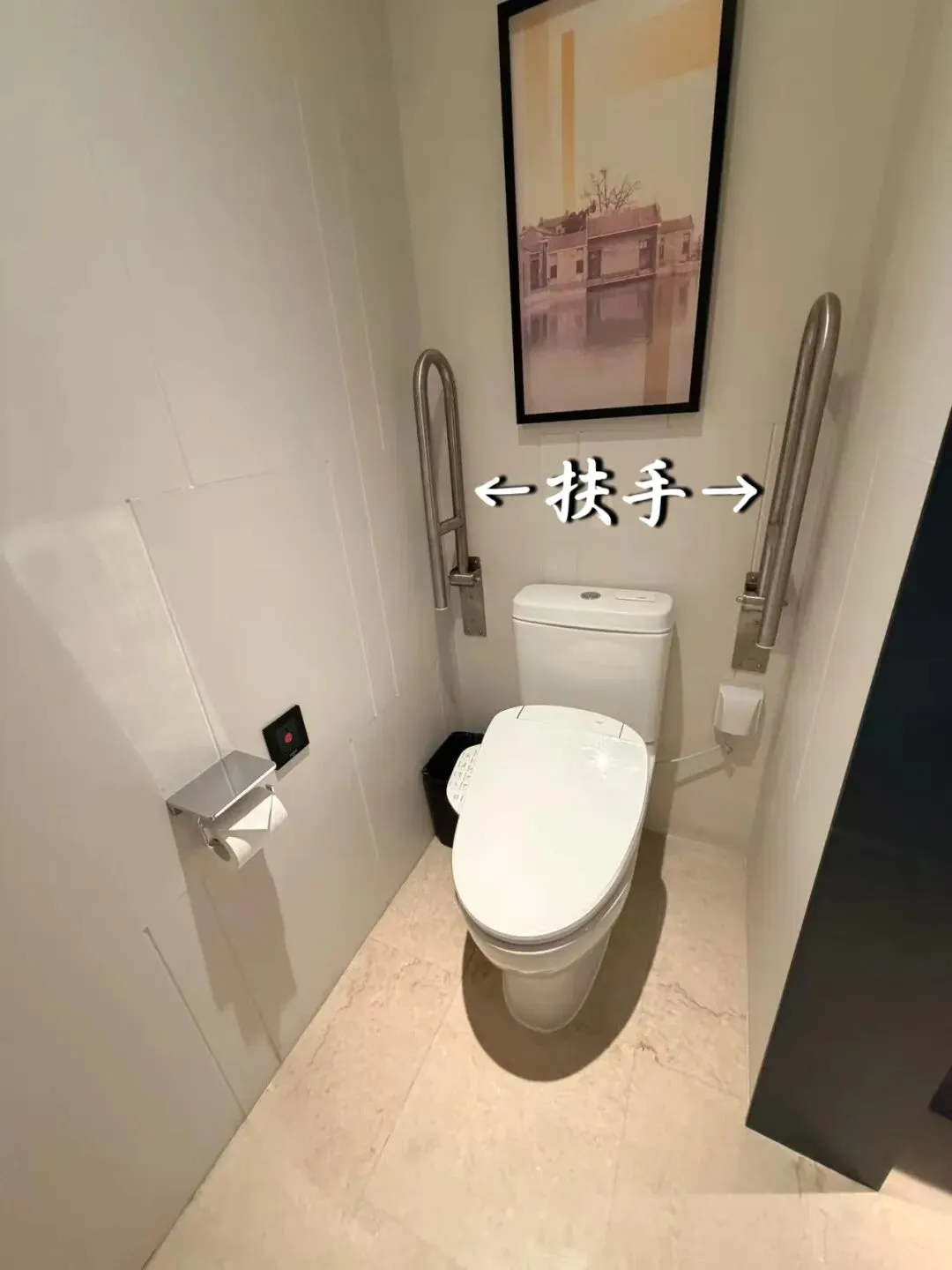 马桶两侧都有扶手,适合借力转移。