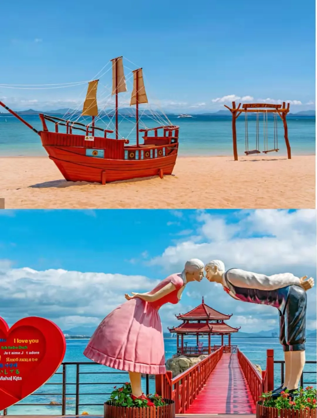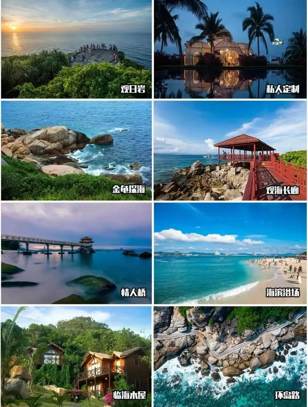 路线:先环岛→观日岩→情人岛→沙滩躺椅→观海长廊,再玩海上项目,潜水→摩托艇→拖伞→水上飞人→网红玻璃船拍照)