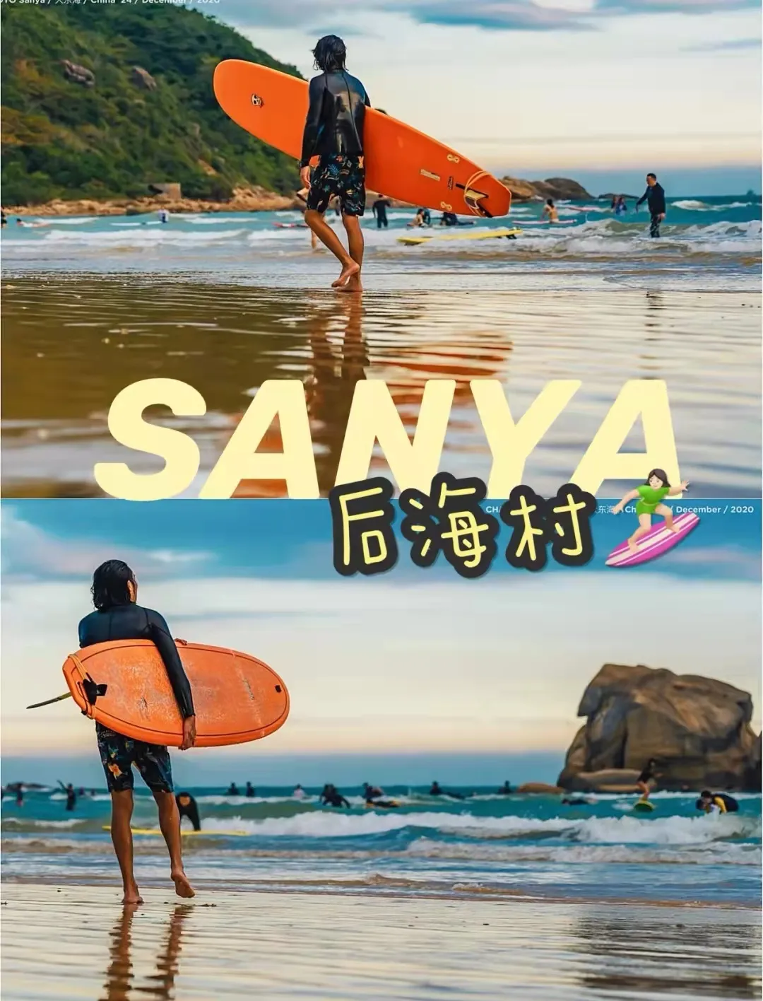 亮点:国内最大的冲浪村,一大批爱好冲浪人聚集在此!冲浪赶海圣地,亲子游首选。可以带小朋友来后海赶海抓小螃蟹,特别好玩!后海景色也很美!晚上海边有Party,有酒吧,喝点小酒,蹦迪,特别适合小情侣。