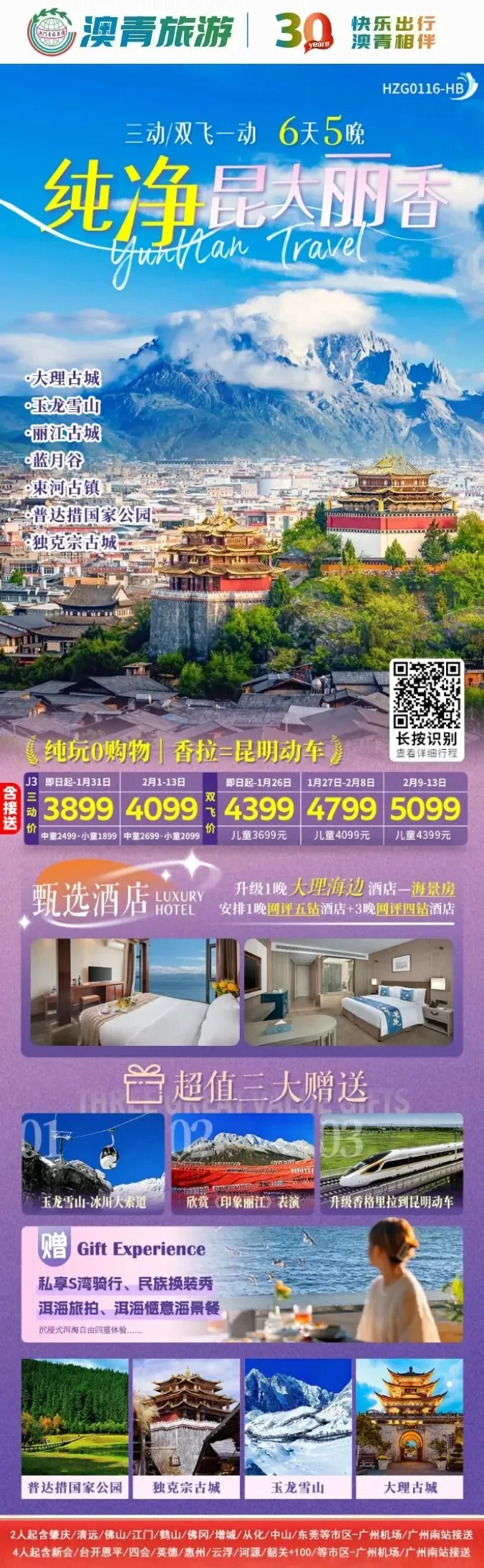 云南爆款~【纯净昆大丽泸6天】
