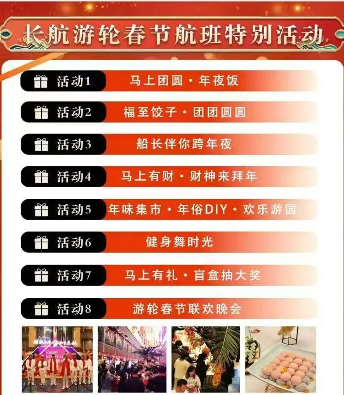央企招商局旗下长航游轮,全船阳台房、房间面积大、人均空间宽敞,有新春游园会等8种新春定制活动,春节仪式感拉满。