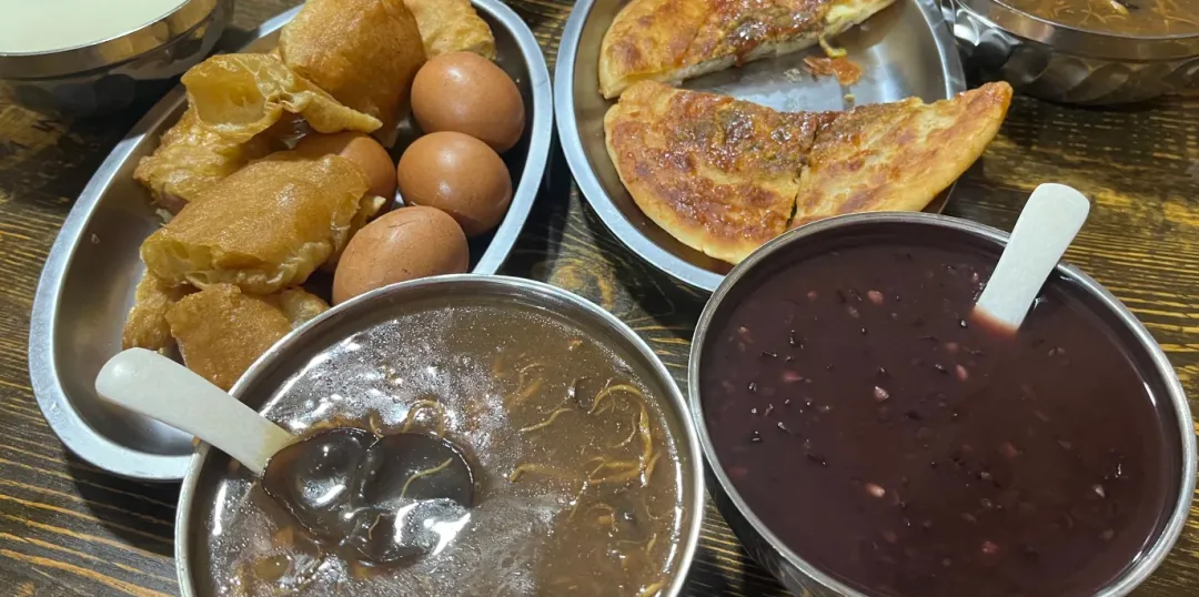 杏仁茶一碗热呼呼,芝麻烧饼刚出炉,外脆里软,肚子不闹脾气。