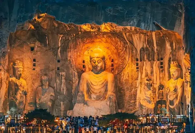 沿着历史的足迹来到河南洛阳,龙门石窟犹如一座巨大的石刻博物馆,展现在眼前。伊河两岸,青山对峙,石窟依山而凿,绵延千米。十万余尊佛像栩栩如生,形态各异,有的慈悲庄严,有的温婉含笑。卢舍那大佛端坐中央,面容饱满,眼神深邃,仿佛洞察世间万物。每一尊佛像背后都有着一段不为人知的历史,或是皇家祈福,或是民间信仰。站在石窟前,仰望这些历经千年风雨洗礼的艺术瑰宝,耳边似乎传来了古代工匠们叮叮当当的雕琢声,那是他们对美的执着追求,也是中华民族坚韧不拔精神的真实写照。