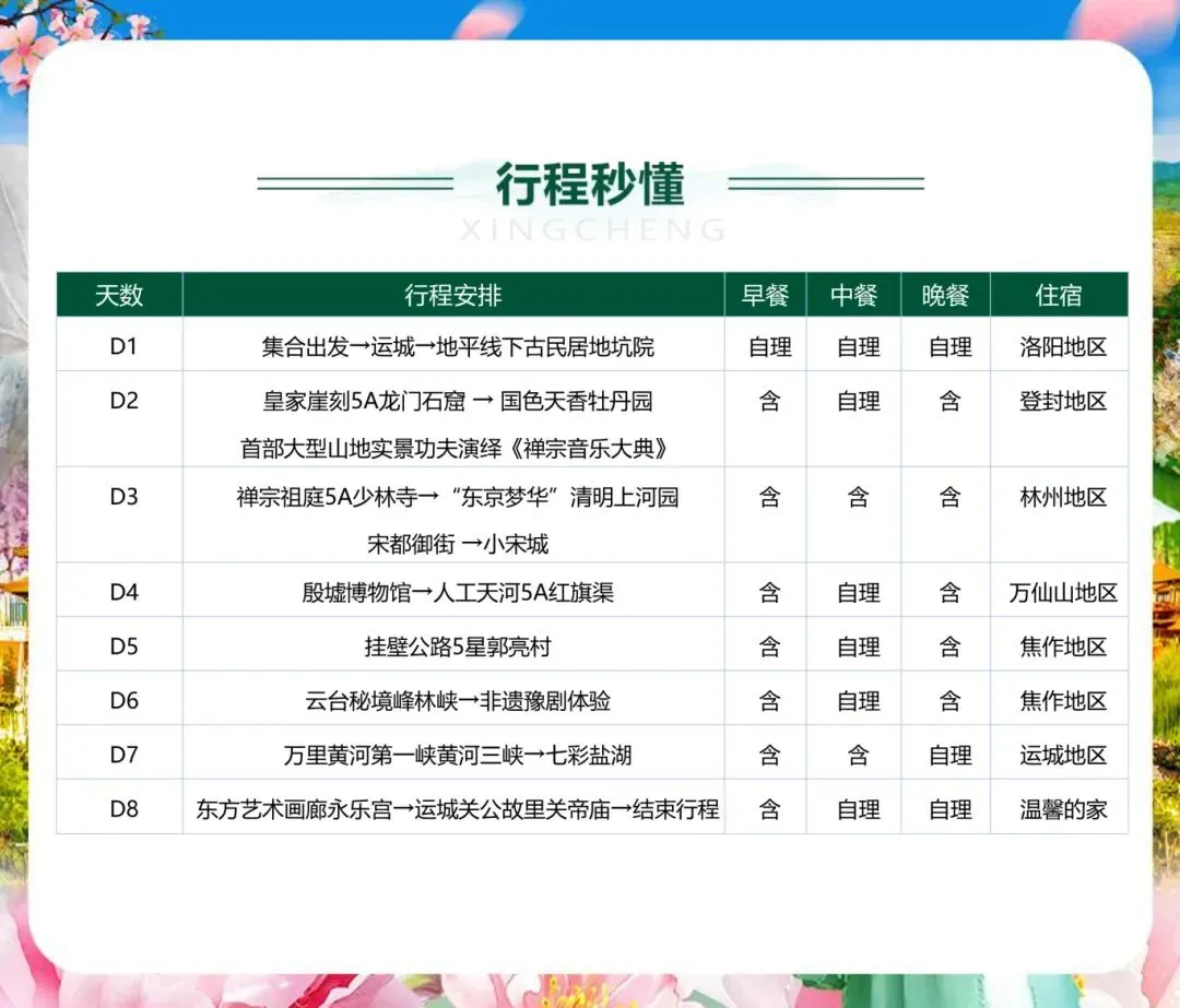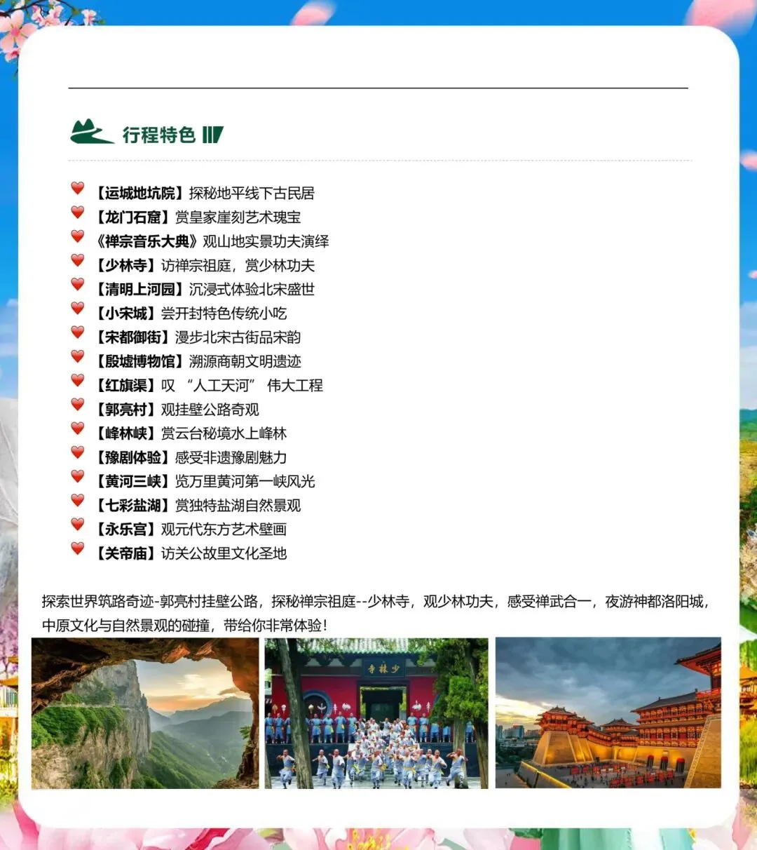 此次山西+河南两省联游涵盖了丰富的历史文化元素和壮丽的自然风光,无论是追寻古人足迹还是亲近大自然怀抱,都将给您留下难忘回忆。2026年,收拾行囊出发吧!让我们一起踏上这段充满惊喜与感动的旅程,去探索未知的世界,收获属于自己的精彩故事。