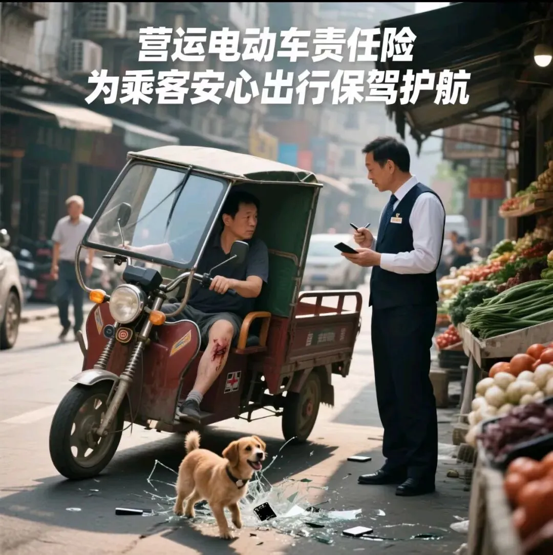 曾有一位市民搭乘电动三轮车前往菜市场。途中,三轮车为躲避突然冲出的小狗,不慎侧翻。市民的手臂和腿部擦伤,且随身携带的一部手机屏幕摔碎。庆幸的是,该电动三轮车车主购买了营运电动车责任险。经保险公司核实后,不仅承担了市民的医疗费用,还对其损坏的手机进行了等价赔偿,让市民得到了妥善的处理,也让电动三轮车车主没有因这起意外背负沉重的经济负担。