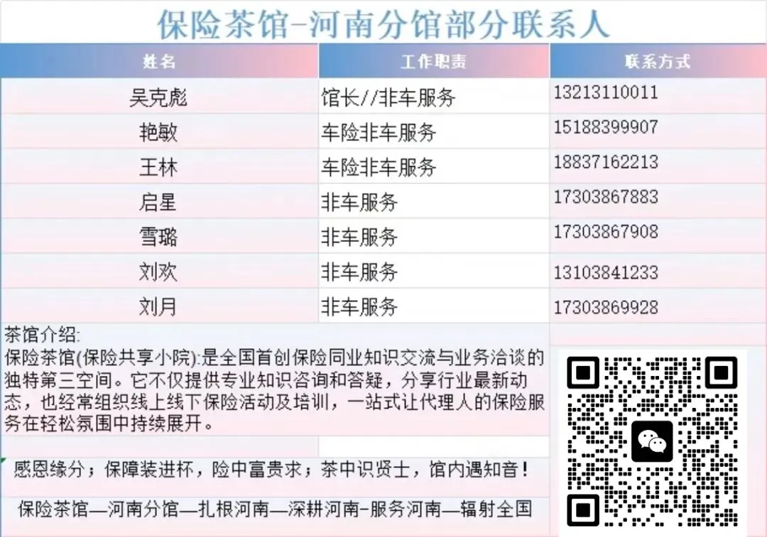 茶馆介绍:保险茶馆(保险共享小院):是全国首创保险同业知识交流与业务洽谈的独特第三空间。它不仅提供专业知识咨询和答疑,分享行业最新动态,也经常组织线上线下保险活动及培训,一站式让代理人的保险服务在轻松氛围中持续展开.