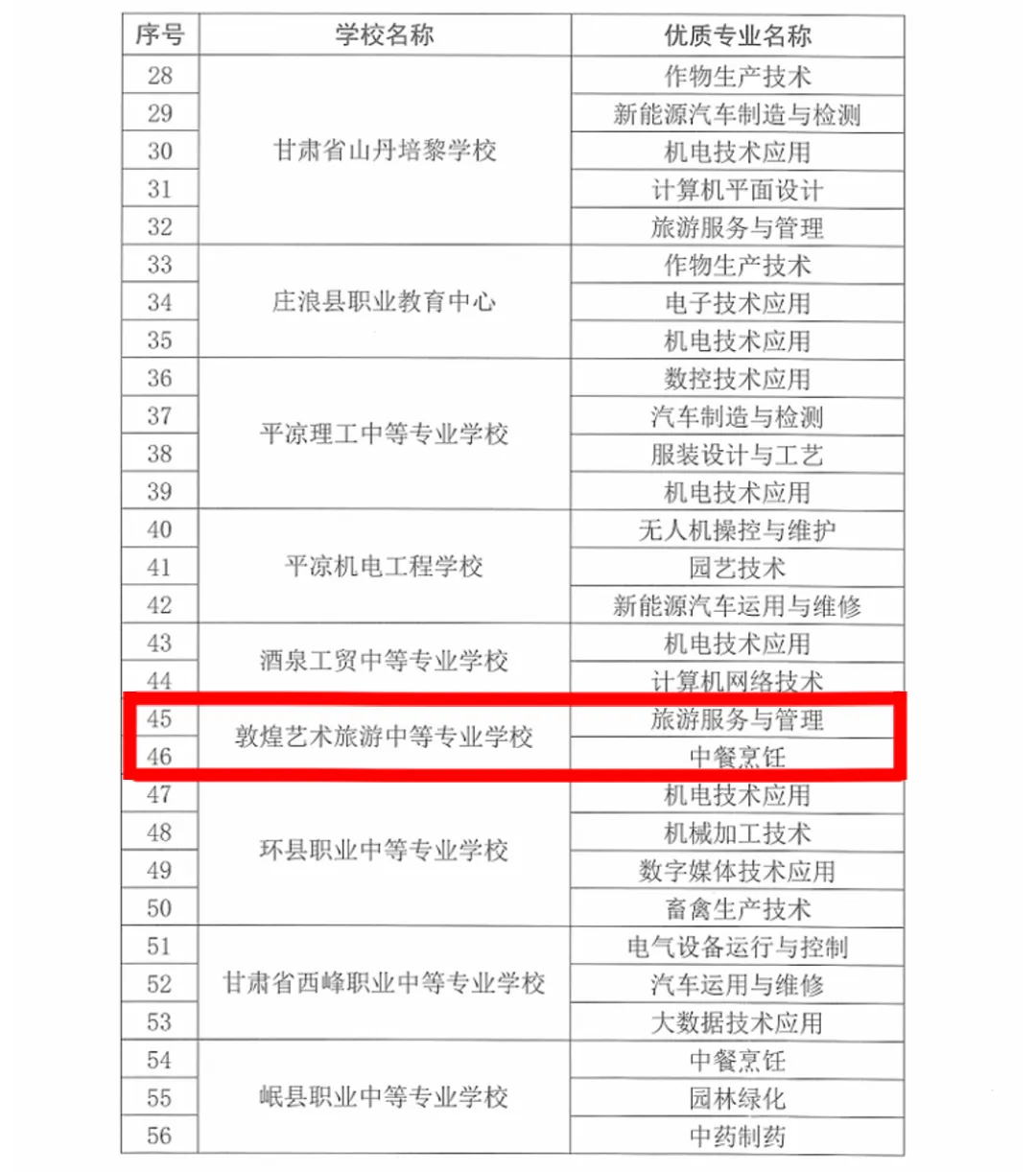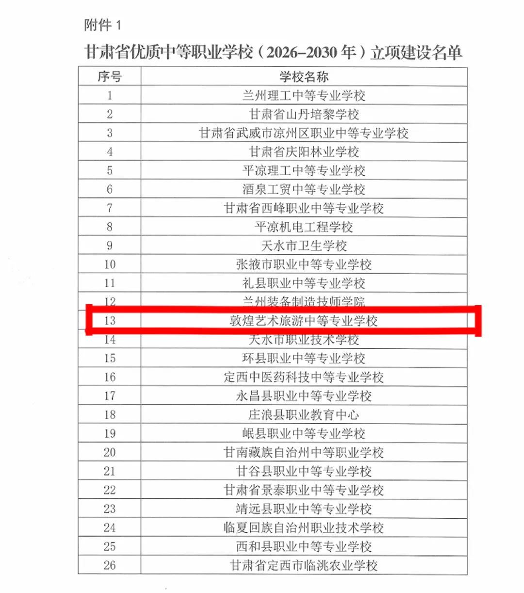 喜报!敦煌艺术旅游中等专业学校及两个专业入选甘肃省优质中等职业学校和优质专业立项建设名单