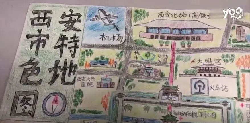 贴心!西安地铁志愿者手绘城市地图,景点在哪秒懂